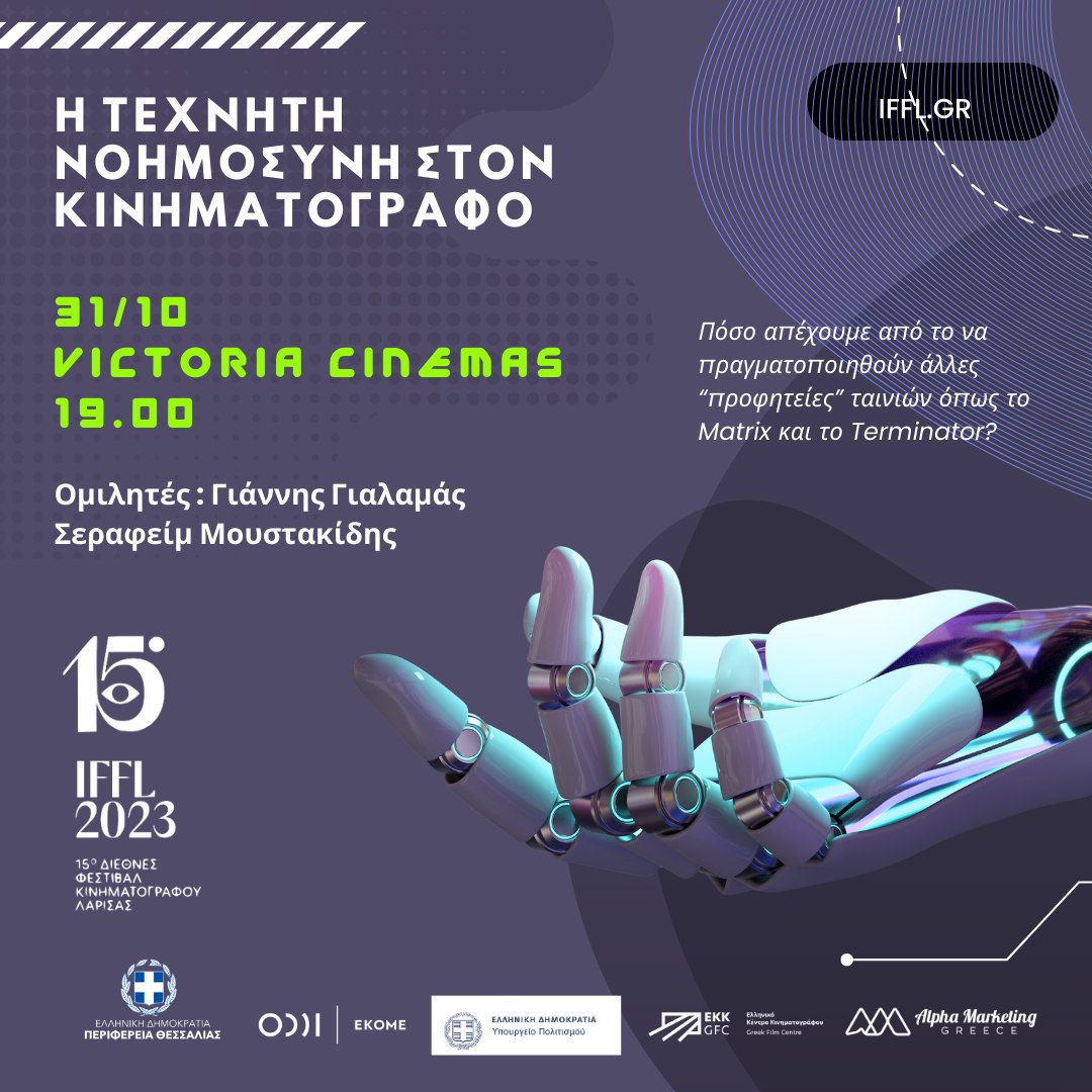 Το πλέον επίκαιρο θέμα της Τεχνητής Νοημοσύνης θα αναλυθεί στο 15ο Διεθνές Φεστιβάλ Κινηματογράφου Λάρισας, την Τρίτη 31 Οκτωβρίου στον κινηματογράφο Βικτώρια στις 7.30 μ.μ. με ομιλητές τους Γιάννη Γιαλαμά και Σεραφείμ Μουστακίδη.